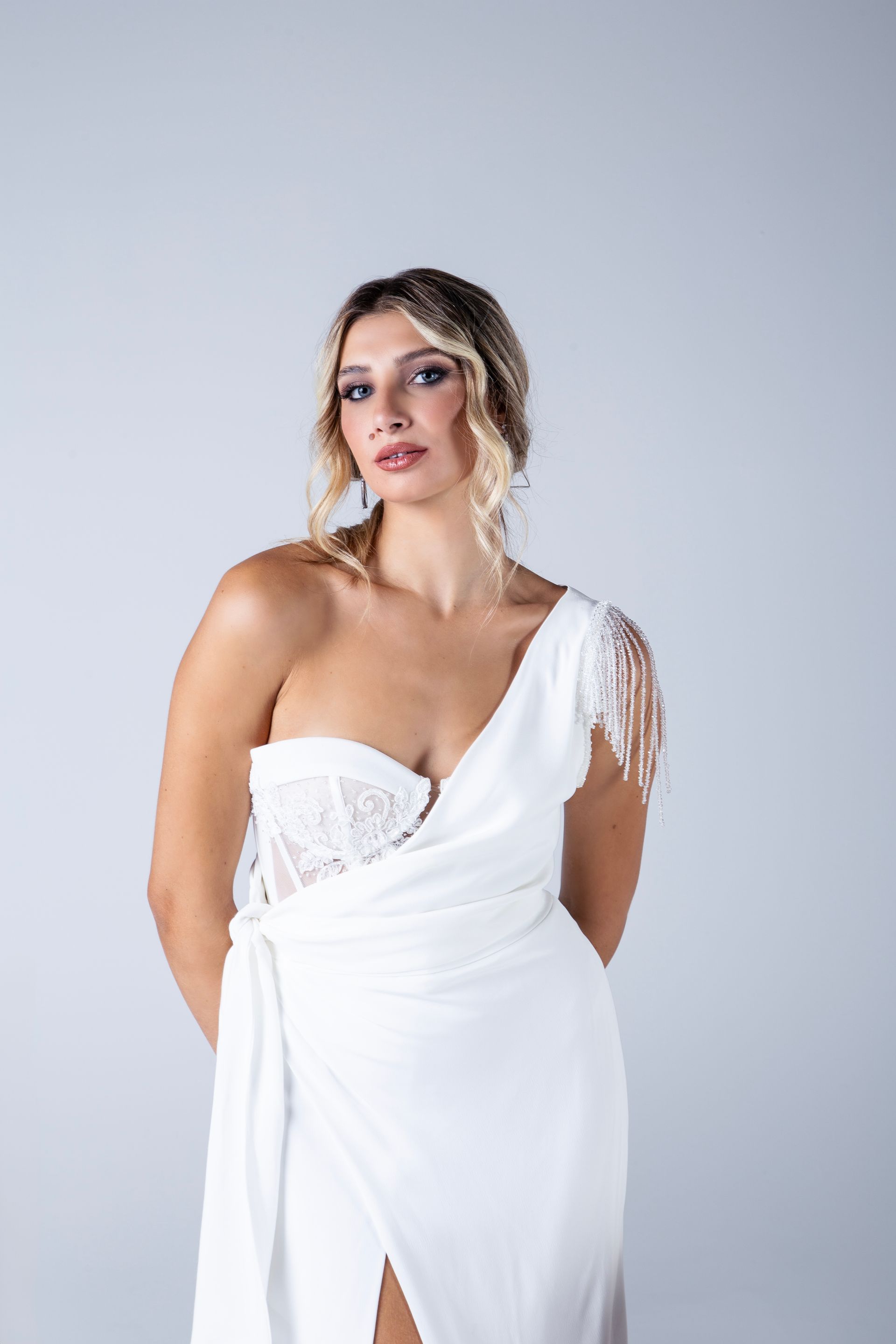 La sposa glamour è una sposa sempre al passo con i tempi, che non si spaventa di osare oppure di rimanere sul classico, purché sia glamour! Per lei è importante che anche nel dettaglio ci sia quel particolare che faccia spiccare il proprio senso del gusto. In questo caso è ancora più necessario che il vestito sia fatto su misura, così da poter esprimere tutto l'estro di una donna nel suo giorno speciale.
